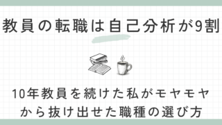 教員を続けるか悩んでいる方へ。10年間教員として働いた私が、自己分析によって価値観・得意なこと・希望職種を言語化し、モヤモヤから抜け出したプロセスを解説します。教員に合う職種が知りたい人にも役立つ内容です。