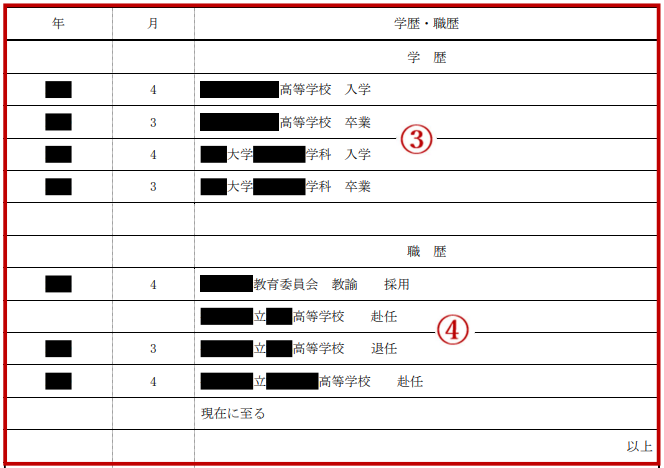 ④職歴(教員の場合)