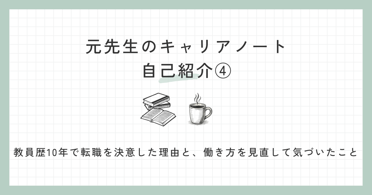 自分自身の記録であると同時に、「転職を考える先生の背中を少しでも押せたら」という思いで書いています。