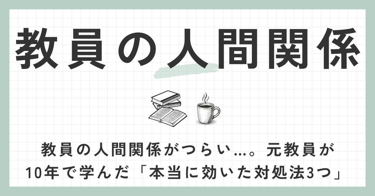 この記事では、あなたと同じように教員の人間関係に悩んでいる方が、少しでも安心して働けるように、