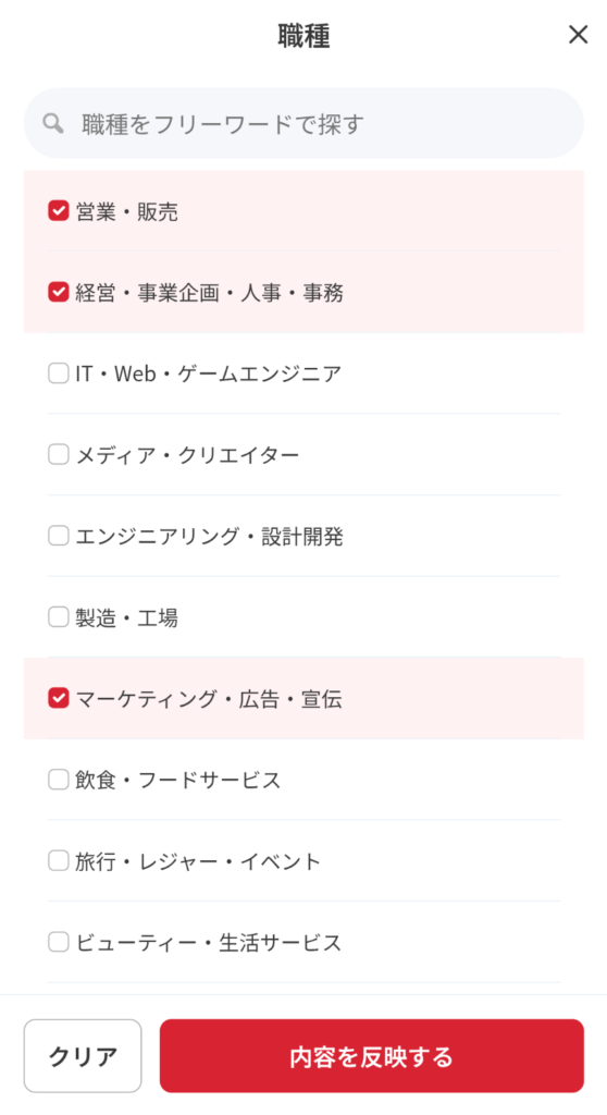 STEP2 気になる職種を3つ検索して保存