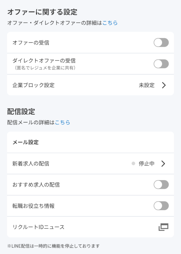 後述しますが、「オファーを受け取らない」設定にすることも可能です。