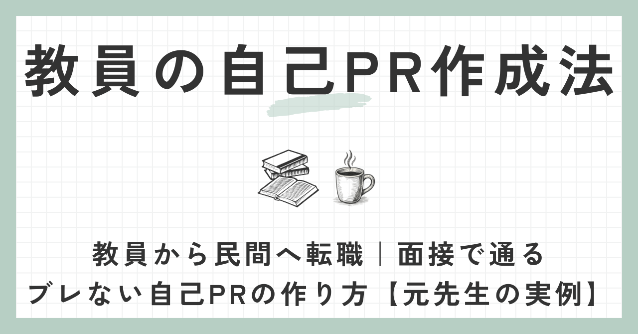 今回は、私自身の具体例をもとに、教員が転職時に使える自己PRの作り方を整理しました。